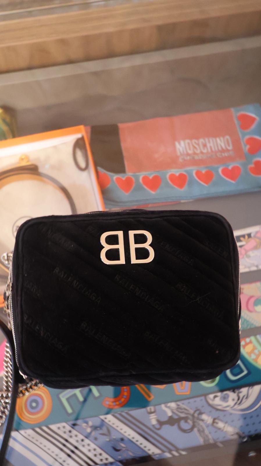 Torebka Balenciaga w wersji welurowej to idealne połączenie miejskiego stylu ze szczyptą luksusu. Wykonana jest z niezwykle przyjemnego w dotyku, czarnego weluru, na którym wytłoczono ukośny wzór z powtarzającą się nazwą marki – to dyskretna, ale efektowna wersja logomanii.