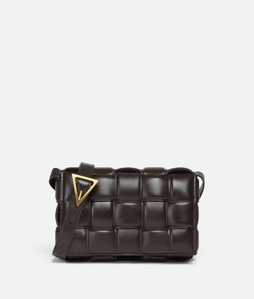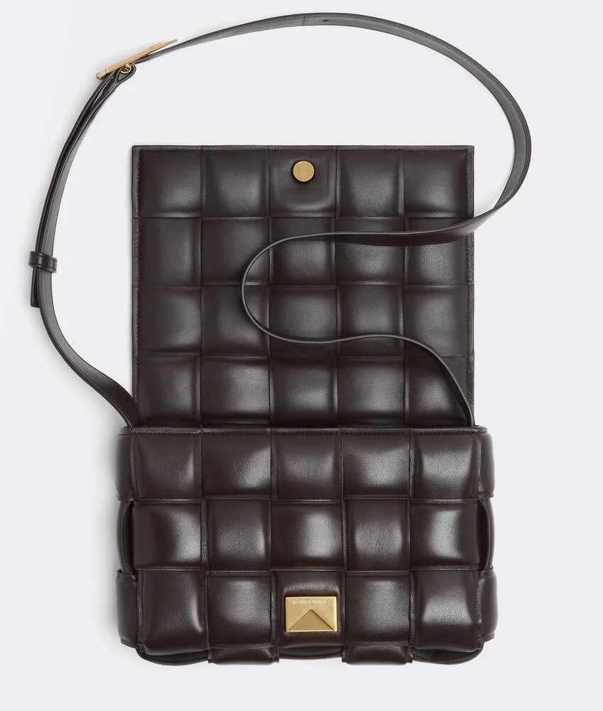 Bottega Veneta Padded Cassette (często wyszukiwana też jako “padded case”) to jedna z najbardziej rozpoznawalnych torebek marki — dzięki miękkiej, pikowanej konstrukcji i charakterystycznemu, geometrycznemu splotowi inspirowanemu intrecciato. Kolor Fondant/Fondue (ciemny brąz) jest bardzo uniwersalny: wygląda luksusowo jak czerń, ale jest cieplejszy i łatwiejszy do stylizacji z beżami, kremami i denimem.