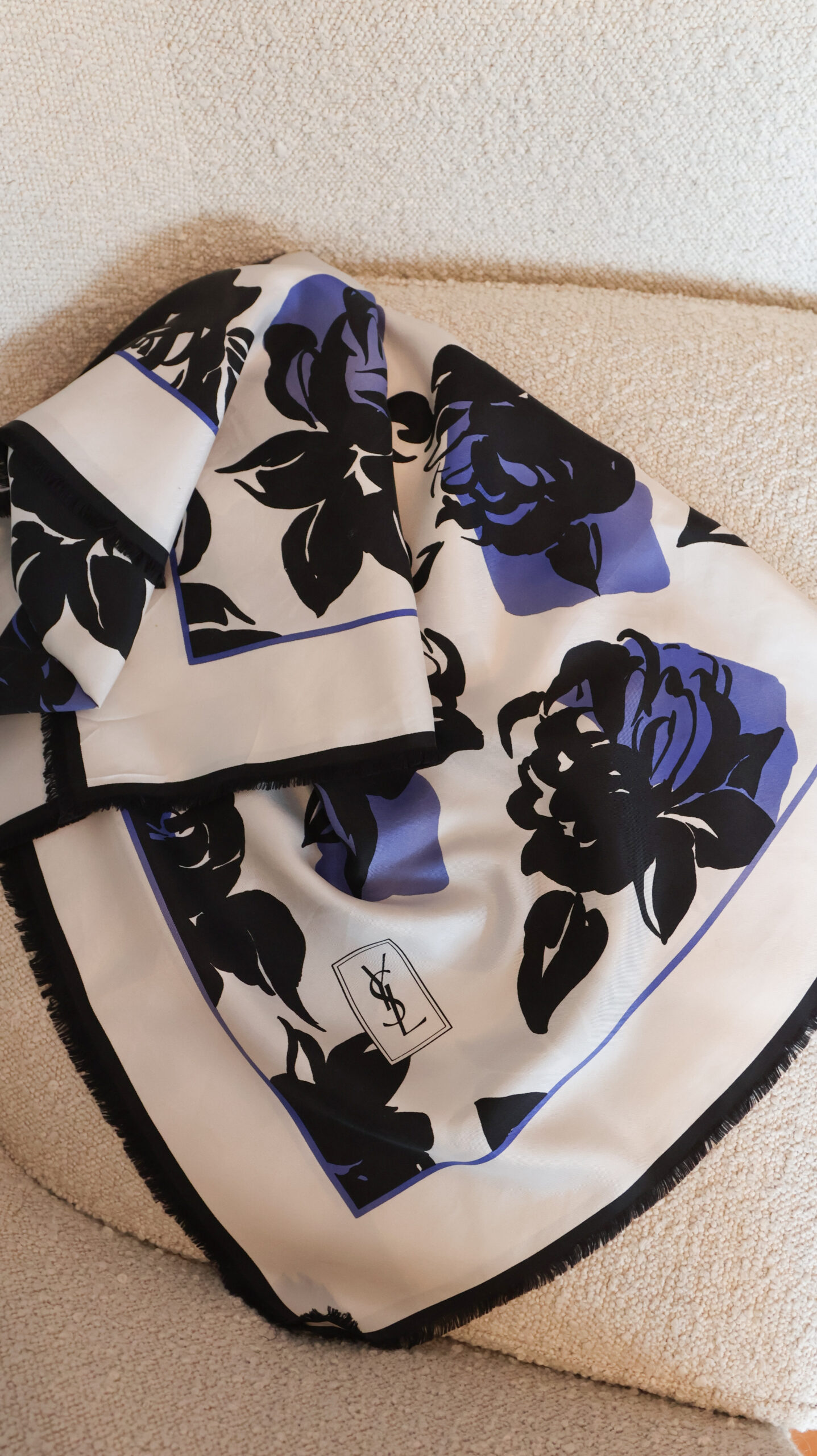 Chusta Yves Saint Laurent (YSL) to kwintesencja paryskiej elegancji i dodatek, który natychmiastowo nada luksusowego szlifu każdej, nawet najprostszej stylizacji. Wykonana z niezwykle gładkiego, połyskującego materiału, pięknie odbija światło i cudownie, miękko układa się na ciele.