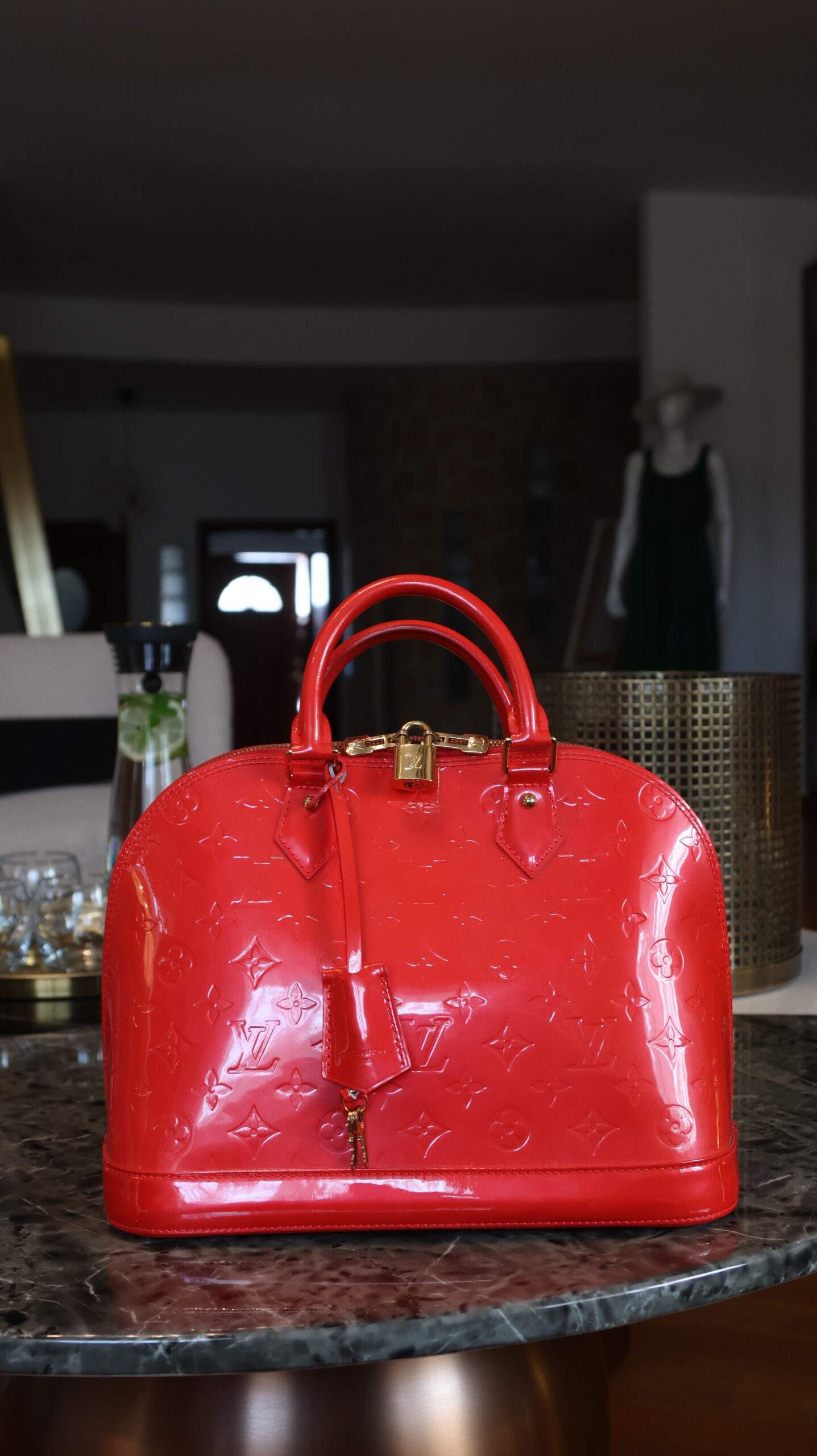 Torebka Louis Vuitton Alma to absolutna klasyka, która zyskuje zupełnie nowy, hipnotyzujący charakter w tej wyjątkowej, limitowanej odsłonie. Ten konkretny model to ucieleśnienie luksusu i designerskiej wizji, charakteryzujące się unikalnym wykończeniem z serii Vernet (Monogram Vernis) – wysokiego połysku skóry lakierowanej z subtelnie wytłoczonym, powiększonym wzorem monogramu.