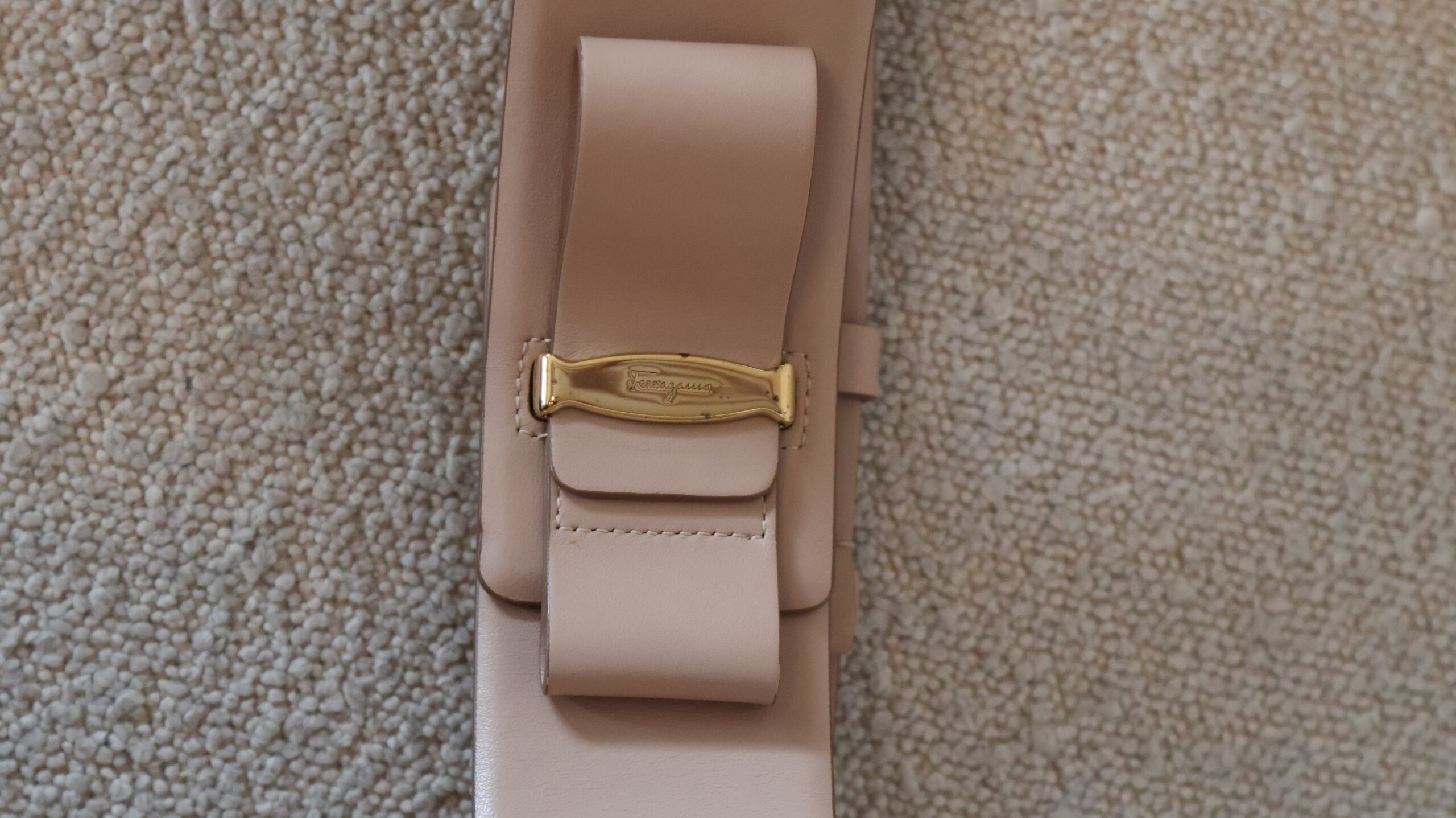 Pasek Salvatore Ferragamo to kwintesencja włoskiej elegancji i niezwykle uroczy dodatek, który pięknie podkreśli kobiecą sylwetkę. Prezentowany model zachwyca subtelnym, pudrowym odcieniem (nude / blush), który fantastycznie wpisuje się w jasną paletę barw i dodaje stylizacjom szlachetnego, miękkiego wykończenia.