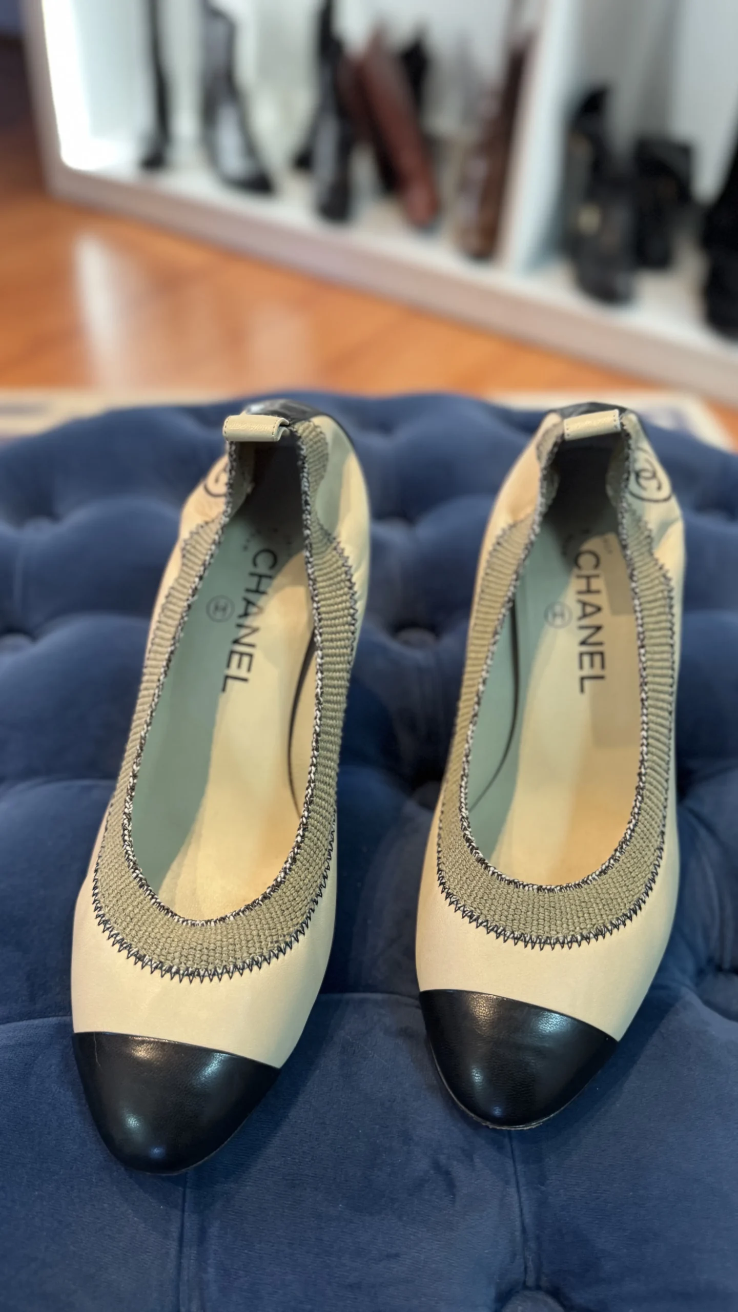 Szpilki Chanel to nowoczesna interpretacja klasyki, która stawia na wygodę bez rezygnacji z elegancji. Model ten nawiązuje do kultowego fasonu two-tone: cholewka w odcieniu kremowego beżu zestawiona jest z kontrastującym, czarnym noskiem (Cap Toe), który optycznie skraca stopę.
