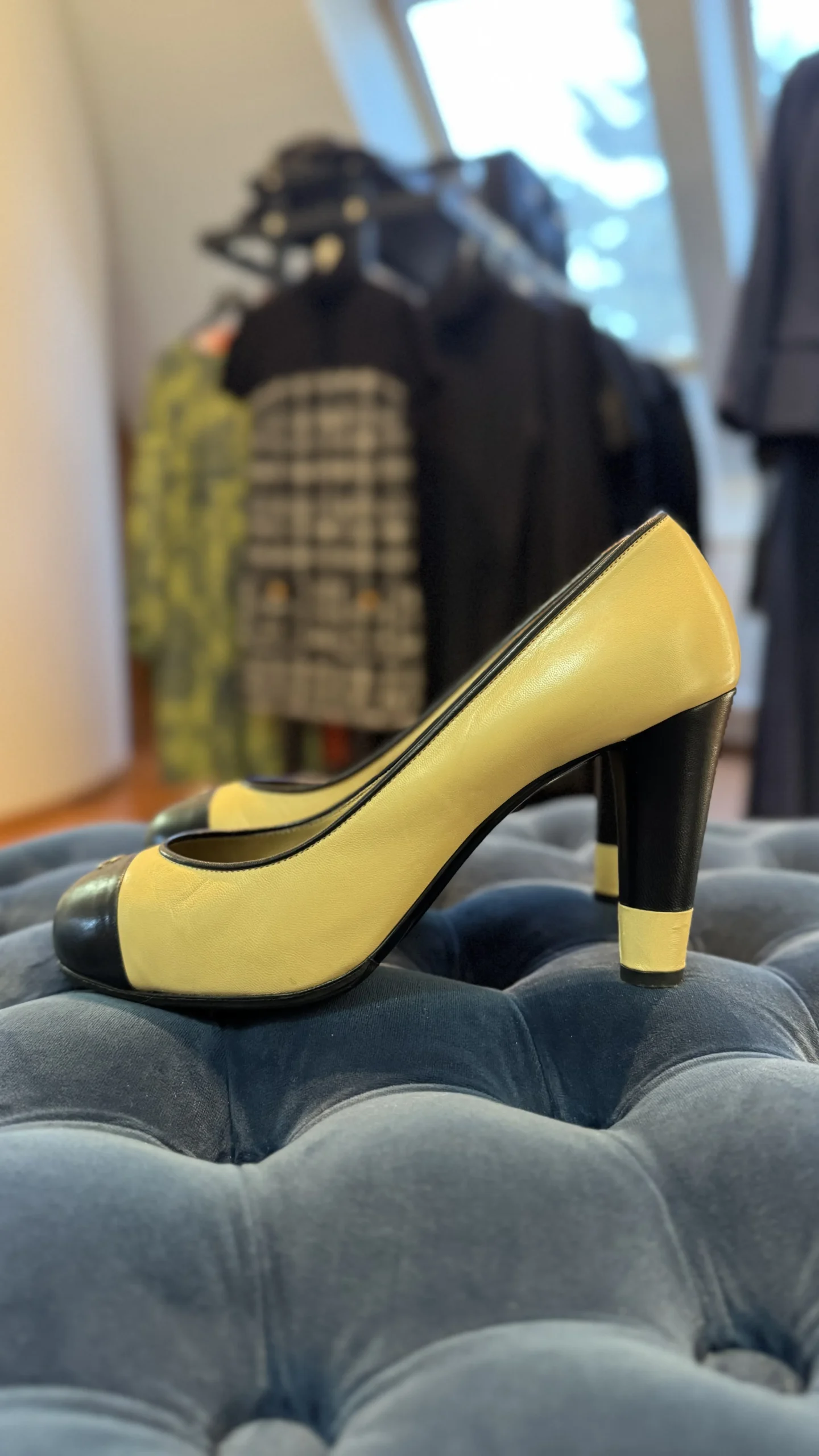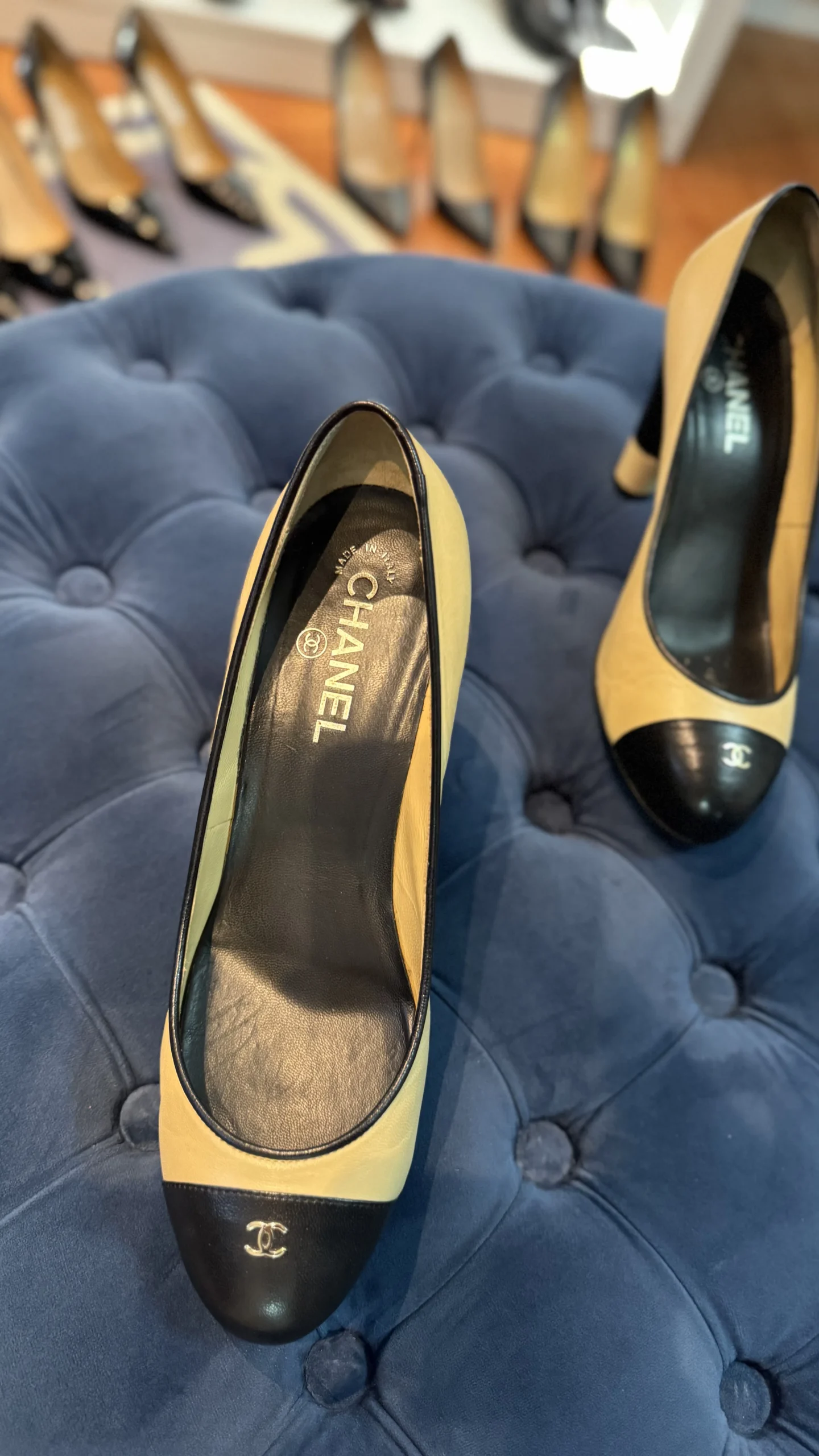 Szpilki Chanel to wyrafinowana i niezwykle elegancka wariacja na temat kultowego modelu two-tone. Cholewka wykonana jest z gładkiej, wysokogatunkowej skóry w uniwersalnym, klasycznym odcieniu beżu (nude), który optycznie wydłuża nogi i pasuje do każdej stylizacji.